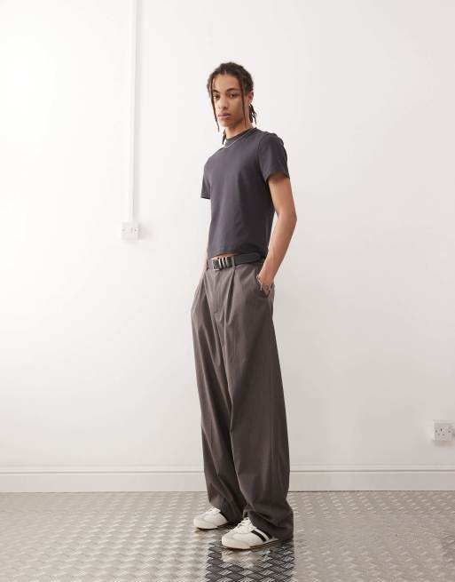 Pantalones marrones sueltos con raya diplomática Uno de Weekday