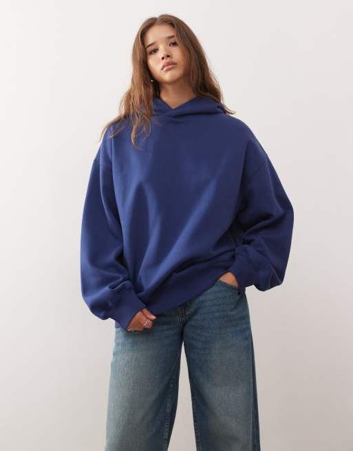 Sudadera azul marino oscuro extragrande con capucha de tejido suave grueso de Weekday