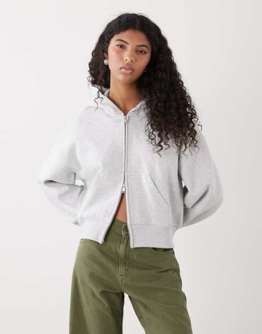 Sudadera corta gris melange de corte cuadrado con capucha y cremallera de Weekday