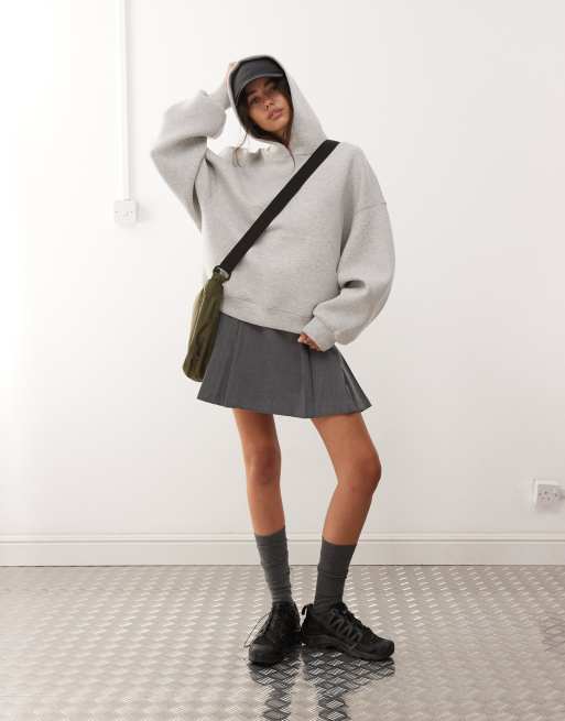 Sudadera gris jaspeado extragrande con capucha de tejido efecto neopreno de Weekday