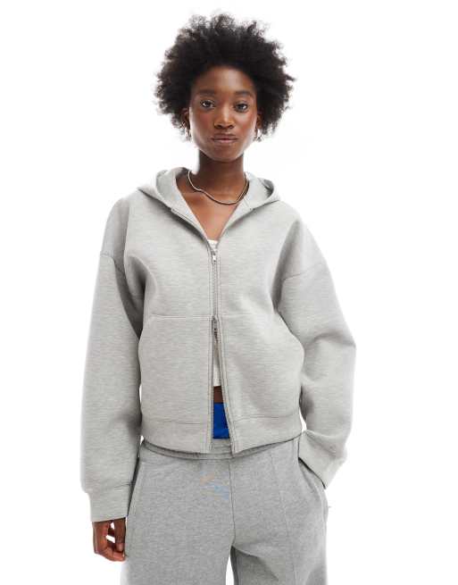 Sudadera gris melange extragrande con capucha y cremallera de tejido efecto neopreno Scarlet de Weekday