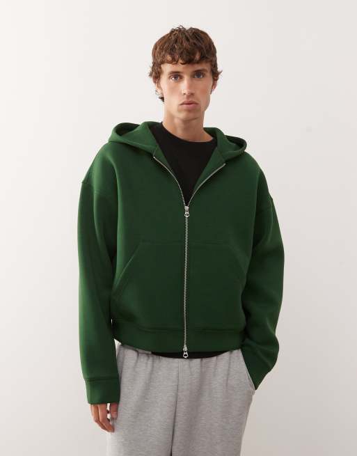 Sudadera verde oscuro con capucha y cremallera de tejido efecto neopreno Simon de Weekday