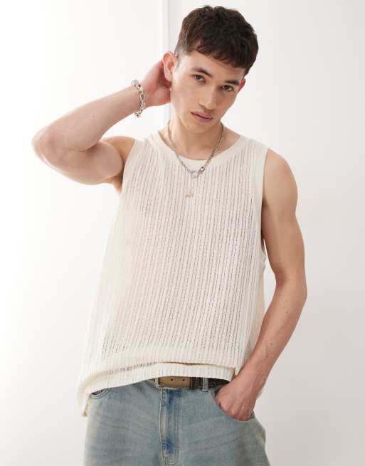 Top blanco hueso sin mangas de punto calado de Weekday