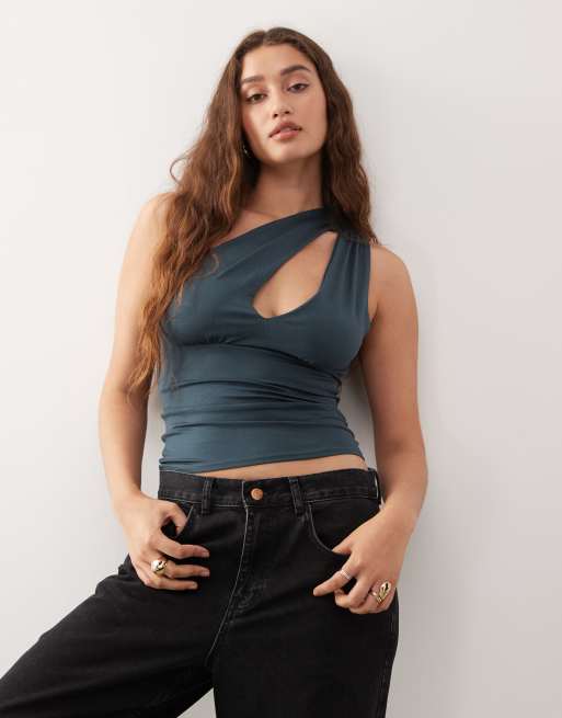 Top gris oscuro asimétrico con detalle de abertura de Weekday