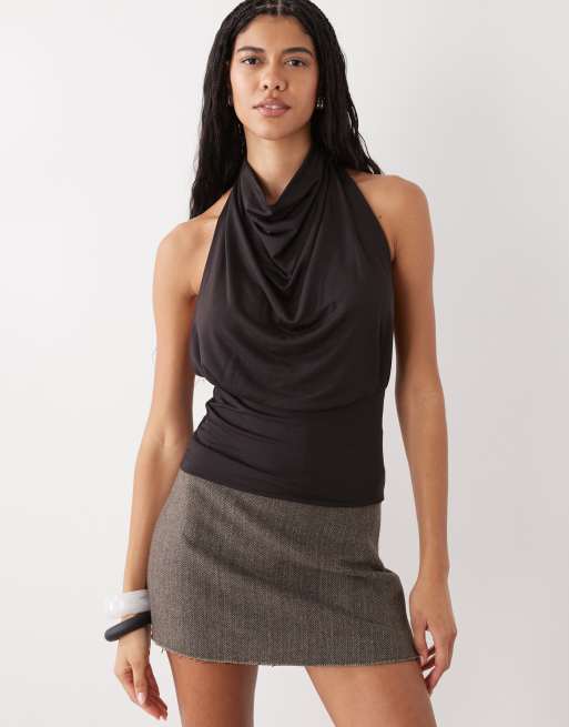 Top marrón oscuro con cuello halter drapeado y detalle de cintura entallada de Weekday