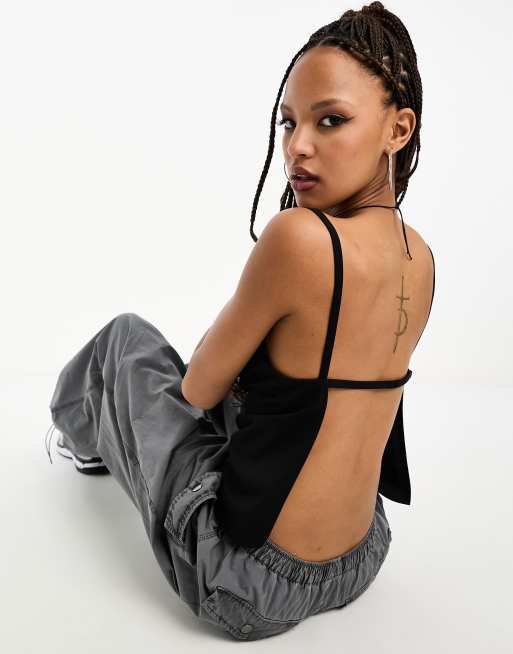 Top negro de tirantes con cuello subido y espalda al aire Fleur de Weekday