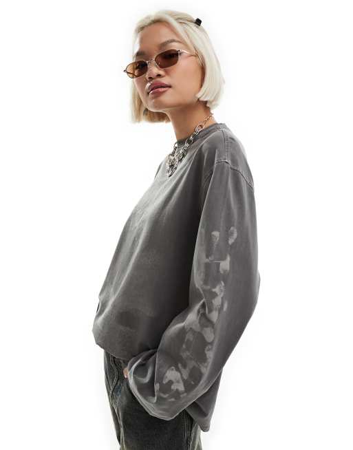 Top negro lavado extragrande de manga larga con estampado gráfico de Weekday