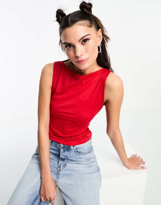 Top rojo sin mangas con cuello oblicuo Annie de Weekday