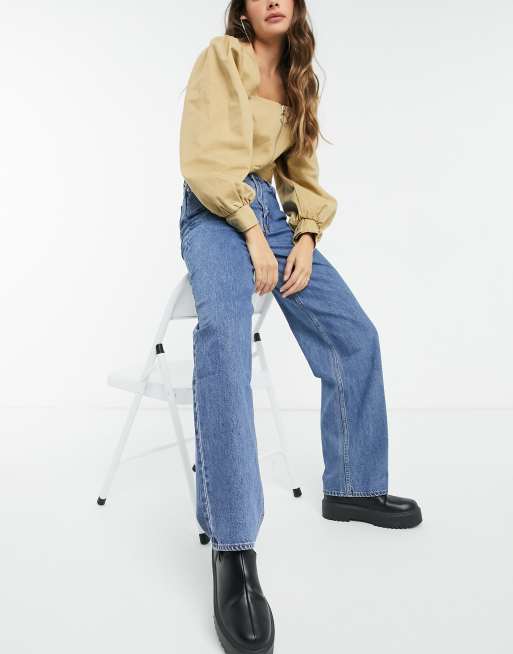 Vaqueros azul grisáceo de corte recto y talle bajo de algodón Arrow de Weekday - MBLUE
