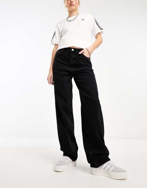 Vaqueros negros de pernera recta, corte suelto y talle medio Rail de Weekday