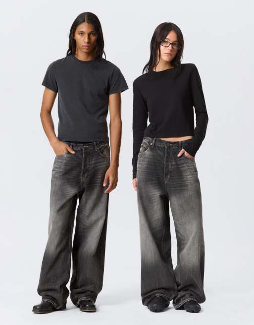 Vaqueros unisex de talle bajo y corte holgado con lavado negro desgastado Astro de Weekday