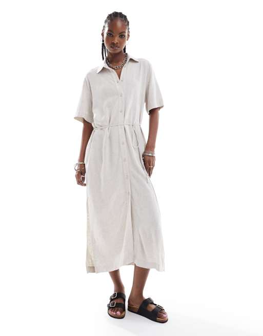 Vestido camisero midi blanco hueso de mezcla de lino Carla de Weekday