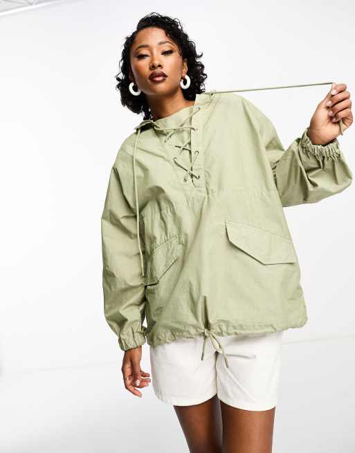 Cortavientos verde salvia con detalle de lazada de Whistles