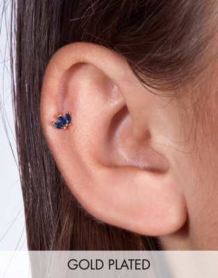 Pendiente labret chapado en oro con diseño de marquesa de esmeraldas azules y barras de 6 mm y 8 mm de titanio de With Bling