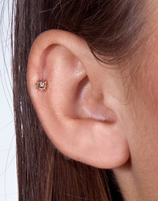 Piercing de 6 mm y 8 mm de barra de titanio con diseño de sol chapado en oro de 18 quilates de With Bling