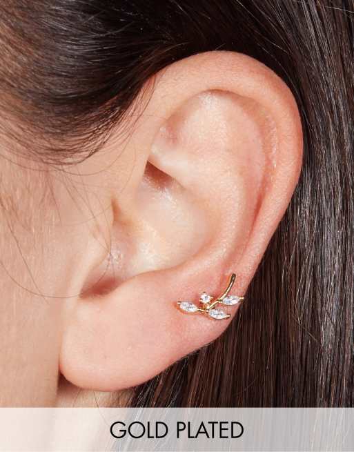 Piercing trepador pequeño con diseño de hoja y barra de 6 mm de titanio chapado en oro de 18 quilates de With Bling