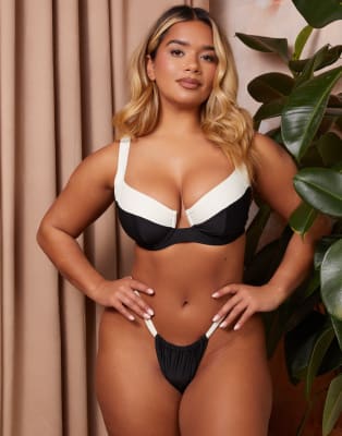 Bikini de copas grandes blanco y negro con diseño en contraste de Wolf & Whistle x Natalie Gessey