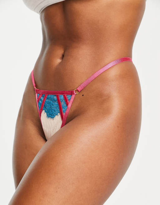 Tanga rosa y turquesa de encaje en contraste de Wolf & Whistle