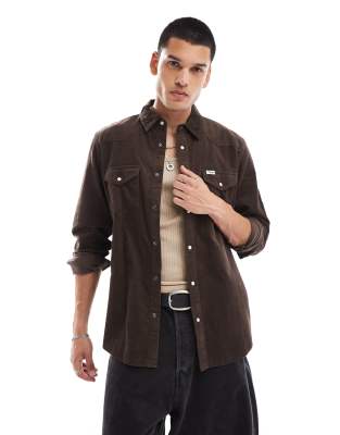 Camisa marrón de estilo wéstern con 2 bolsillos de pana de Wrangler