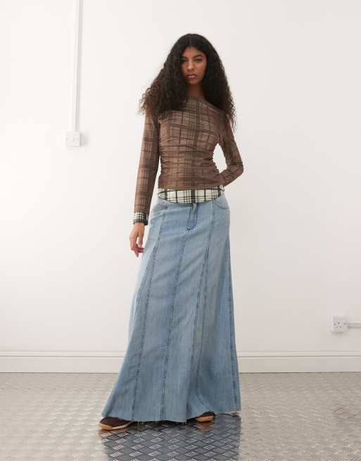 Falda vaquera larga con lavado azul claro y pliegues de Wrangler