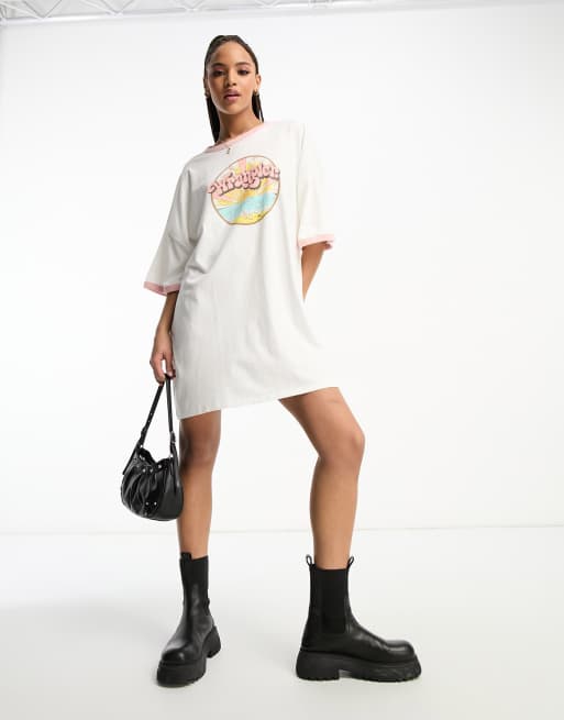 Vestido blanco extragrande estilo camiseta con ribetes de Wrangler