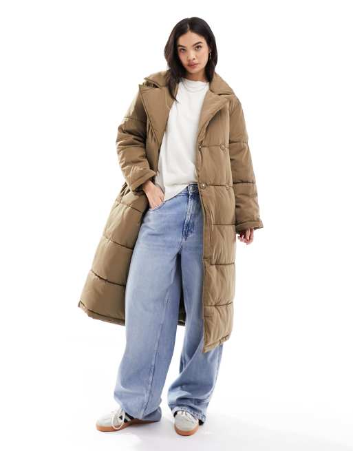 Abrigo largo marrón acolchado con cinturón de Y.A.S