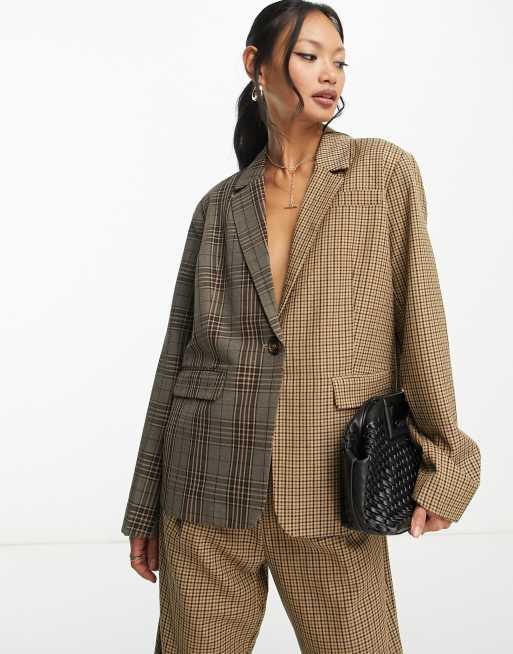 Americana marrón de sastre a cuadros con diseño dividido de Y.A.S