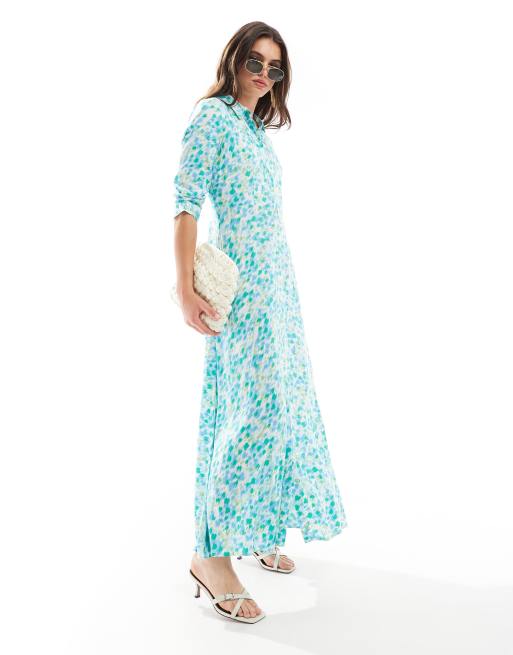 Vestido camisero largo verde con estampado floral difuminado de YAS