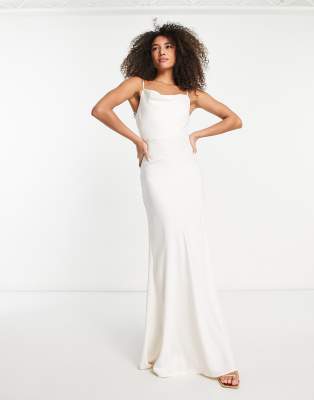 Vestido de novia largo blanco de tirantes de satén de fibras mezcladas de Y.A.S