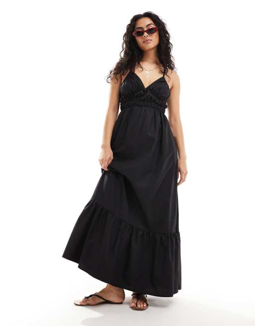 Vestido largo negro de tirantes con espalda cruzada de popelina de algodón de Y.A.S
