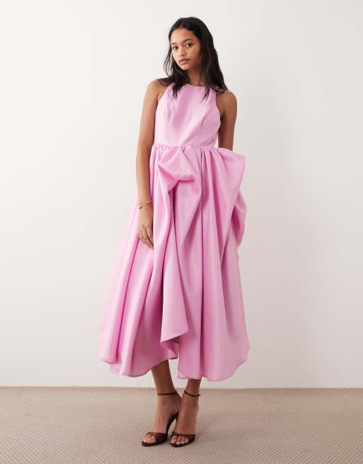 Vestido largo rosa escarchado plisado y estructurado de tafetán de YAS