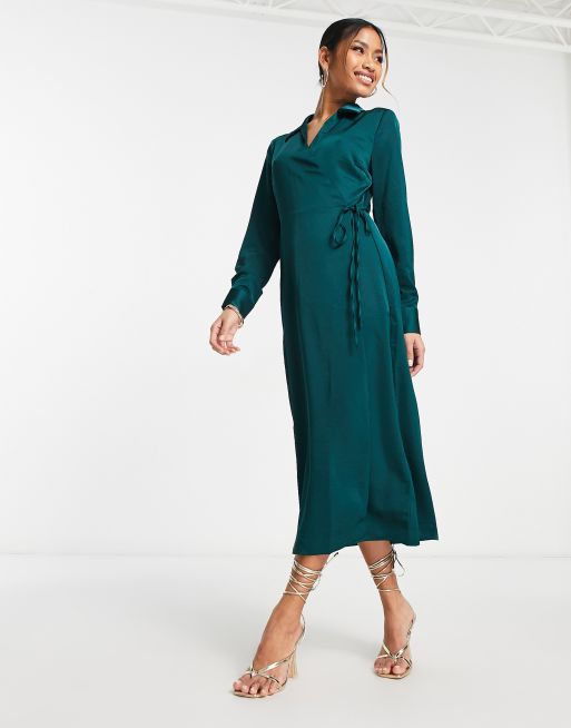 Vestido midi color cerceta cruzado de manga larga exclusivo de Y.A.S