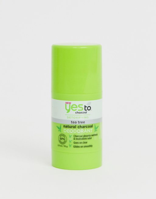 - Yes To Charcoal forma parte de la gama de cuidado para la piel galardonada, Yes To, una línea natural que utiliza los beneficios de las frutas, las verduras y otros ingredientes naturales. Yes To Charcoal está formulado con carbón desintoxicante y es adecuado para todo tipo de pieles. Di que sí a su gama de desodorantes naturales, mascarillas de barro y exfoliantes de limpieza.