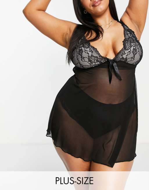 Babydoll negro con sujetador de encaje de Yours