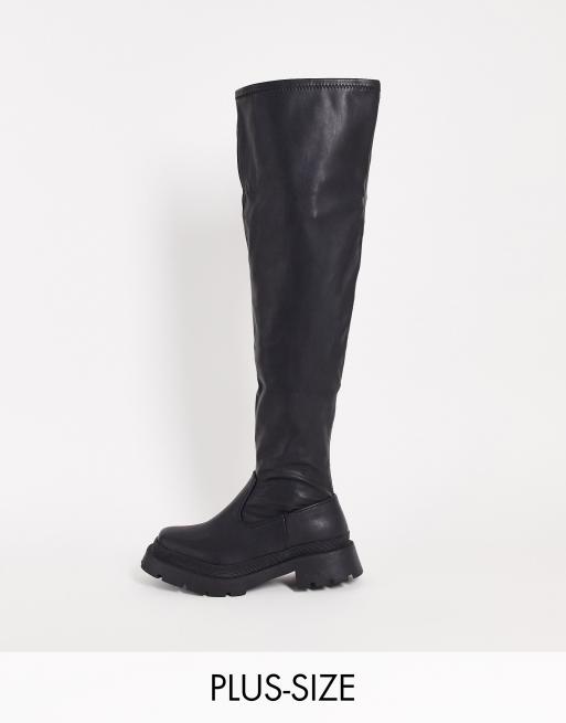 Botas negras por la rodilla planas con suela gruesa de Yours Wide Fit