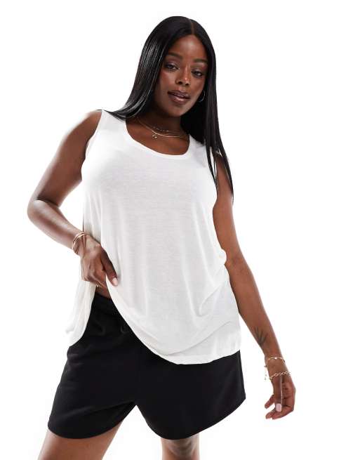 Camiseta blanca sin mangas de tejido efecto lino de Yours