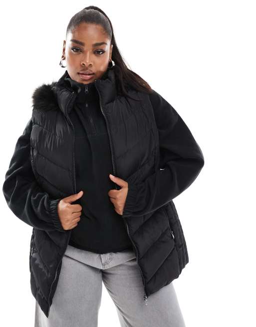 Chaleco negro con capucha y ribete de piel sintética de Yours