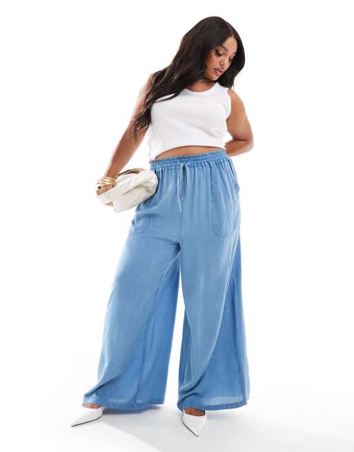 Pantalones azules de pernera ancha de cambray de Yours