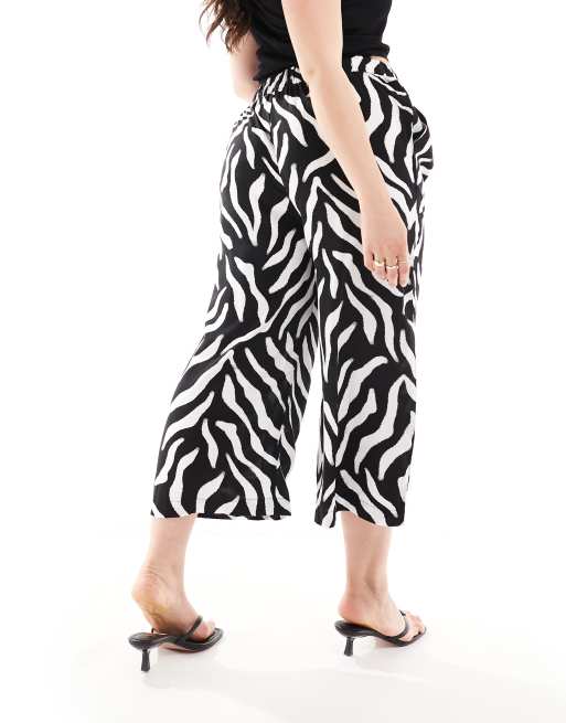 Pantalones culotte de pernera ancha con estampado de cebra de Yours