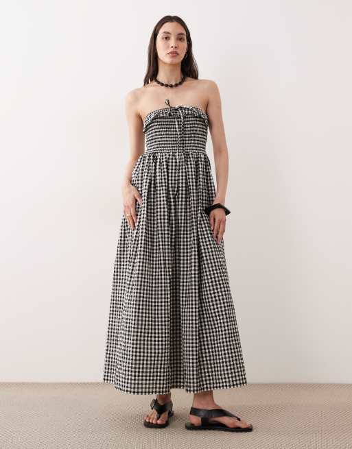 Esmee bandeau maxi beach dress in black & cream gingham