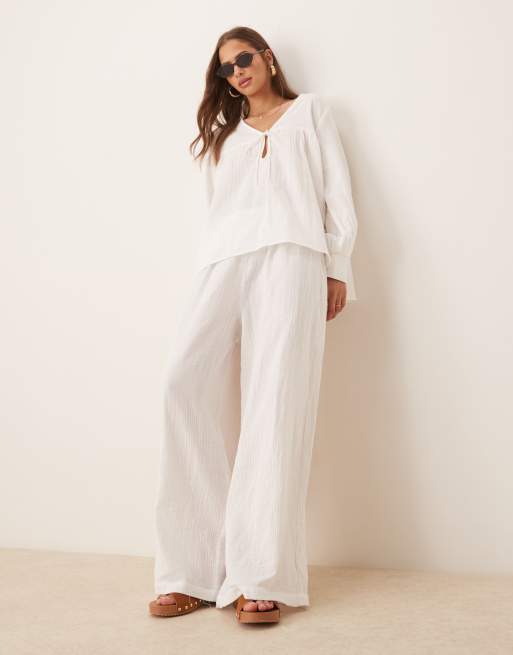 Esmee Exclusive relaxed fit tie front beach co-ord in white