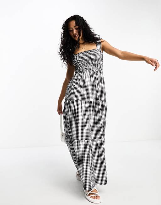Esmee Exclusive shirred waist maxi summer dress in black and white gingham