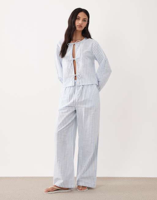 Esmee tie front beach co-ord in blue & white stripe