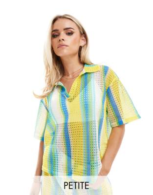 Extro & Vert Petite striped crochet shirt co-ord in multi stripe