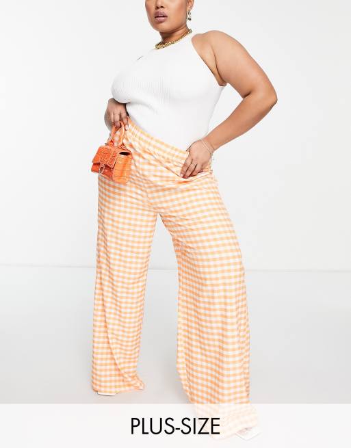 Extro & Vert Plus elasticated super wide leg trousers in orange gingham