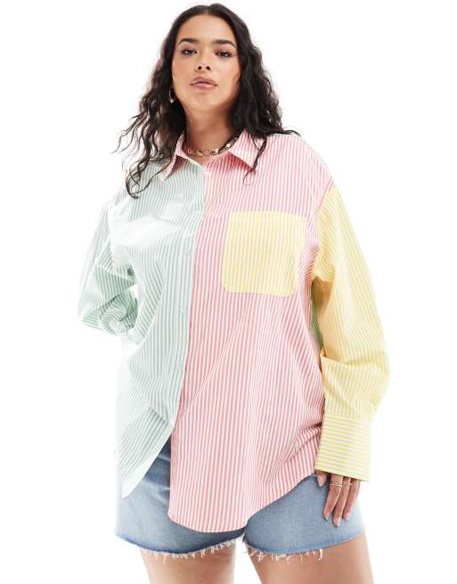 Extro & Vert Plus patchwork shirt in pastel stripe