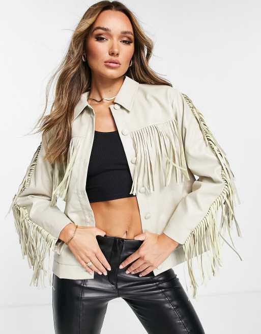 Extro & Vert faux leather western tassel jacket in ecru