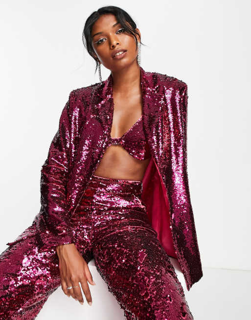 Extro & Vert oversized blazer in hot pink sequin co-ord