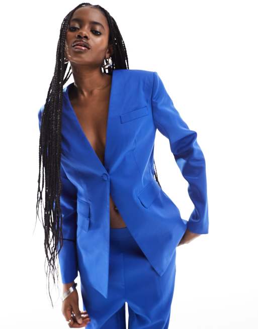 Extro & Vert tailored buttoned blazer in cobalt co-ord