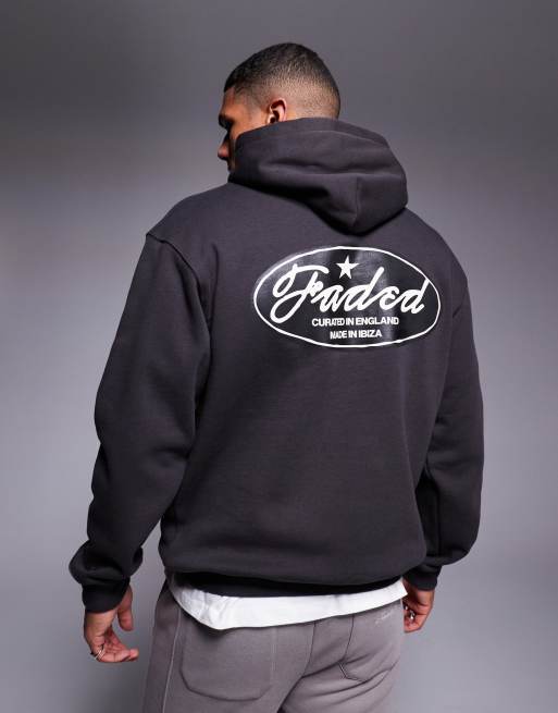 Faded Store contrast script logo back hoodie in charcoal